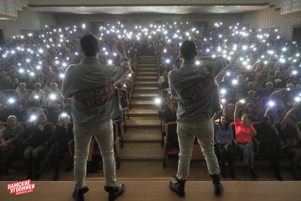 Ведущие Александр Меркурьев и Сергей Назаров виртуозно выстраивают диалог между залом и угодниками. Можно по-разному относиться к этому коллективу, но лучше один раз увидеть, чем сто раз услышать. «Дамские угодники» – это то, что не оставит равнодушным!